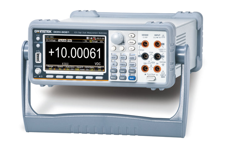 GW Instek launches GDM-906X series 6 ½ digit dual measurement multimeter (2 models: GDM-9061 and GDM-9060), featuring high precision DC voltage accuracy, fast sampling rate, 12 measurement functions (DC voltage/current, AC voltage/current, 2-wire/4-wire resistance, frequency, period, diode, continuity beeper, temperature, capacitance), 6 mathematical functions (dB/dBm/Compare/ MX+B/Percent and 1/X) as well as a variety of communications interfaces (USB device/host, RS-232C, LAN, digital I/O and optional GPIB) to provide comprehensive measurement capabilities, higher speed and accuracy.