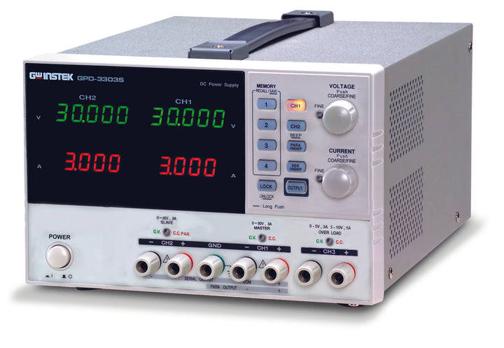 The GPD-X303S Series contains the superior technology and high quality which GW Instek had established through its long history of power supply design and manufacturing. The GPD-X303 Series offers digital panel control, large display, bright LED indicators, high output resolution, 4 sets of setup memory, USB remote control and smart cooling fan control. Additionally , the GPD-X303S Series provides easy operation , a wide selection of panel setting and operation. All these features make the GPD-X303 Series the most promising new comer in the power supply market.