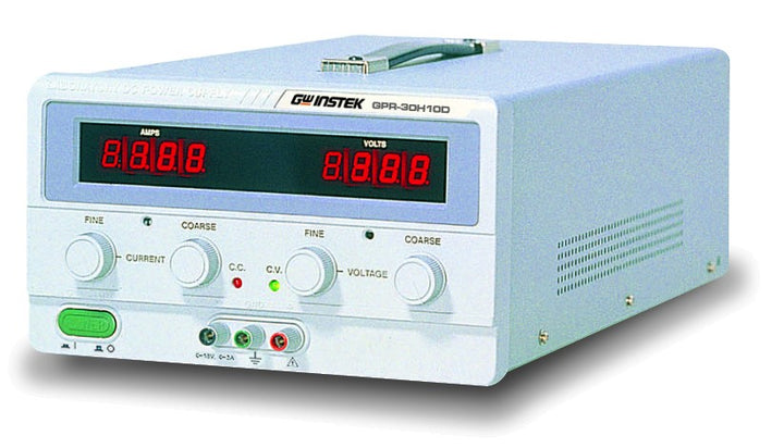 The GPR-H Series is single output, 240 to 375W, linear DC power supplies. Ranging from 8 to 300V, the GPR-H Series comes in a number of different configurations to suit a variety of different needs. To protect loads, the GPR-H Series features robust protection measures with overload and reverse polarity protection. Continuous or dynamic output is supported for pulsed current applications such as power amplifier testing. The high regulation and low ripple/noise make the GPR-H Series suitable for high-end bench-top applications requiring precision.