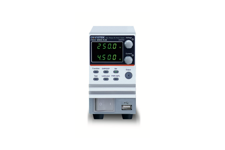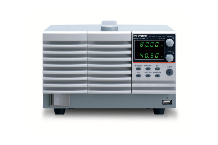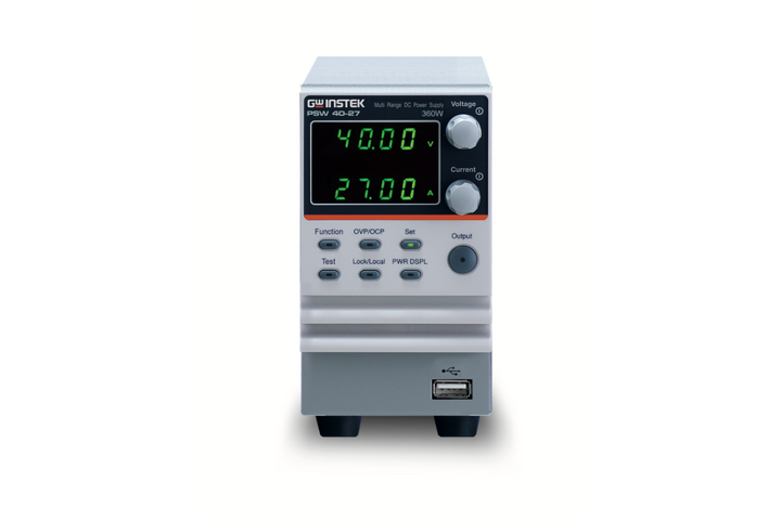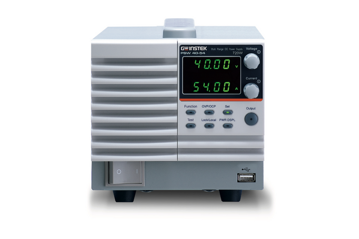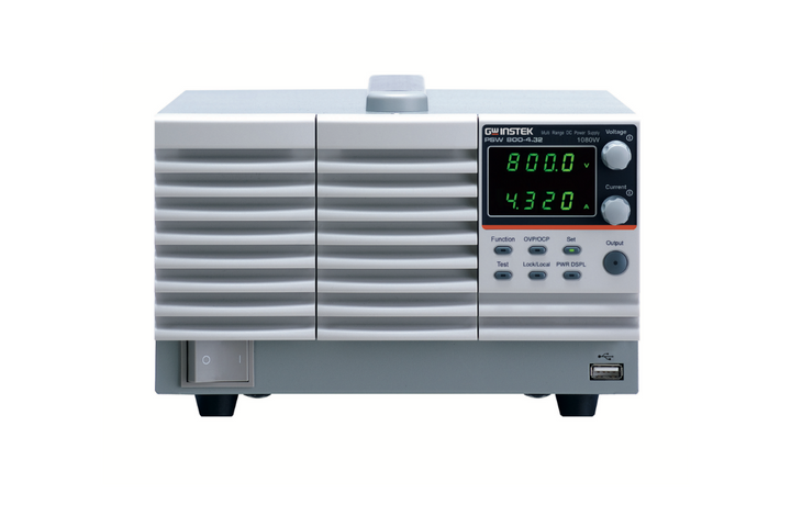 The PSW-Series is a single-output multi-range programmable switching DC Power Supply covering a power range up to 1080W. This series of products include eighteen models with the combination of 30 V, 40 V, 80 V, 160 V, 250 V, and 800 V rated voltages and 360 W, 720 W and 1080W maximum output powers. The multi-range feature allows the flexible and efficient configuration of voltage and current within the rated power range.
