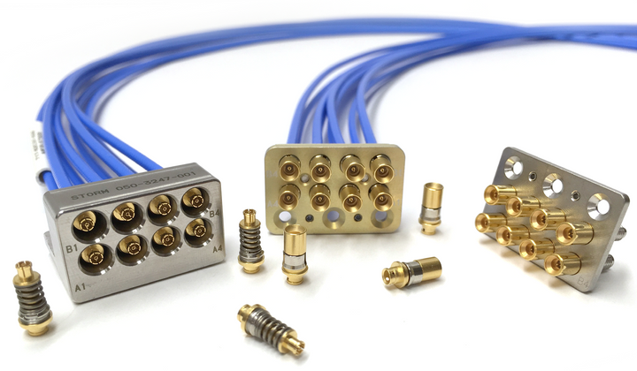 VITA 67 components are connector blocks that utilize SMPM & OSMM RF interfaces and cables to make the electrical connection between circuit boards. Designed to accommodate 0.086” or 0.047" diameter cables, the rugged VITA 67 blocks are perfectly complemented by their pairing with Teledyne Storm Microwave’s Storm Flex® 086 and 047 cables.